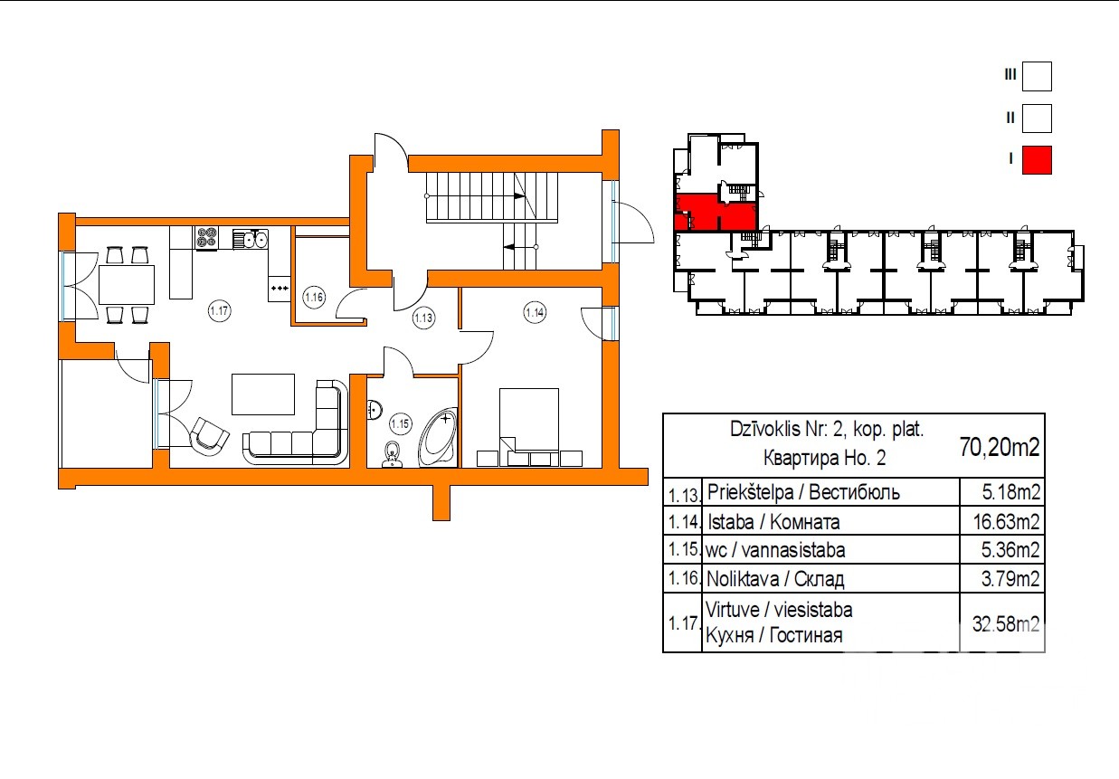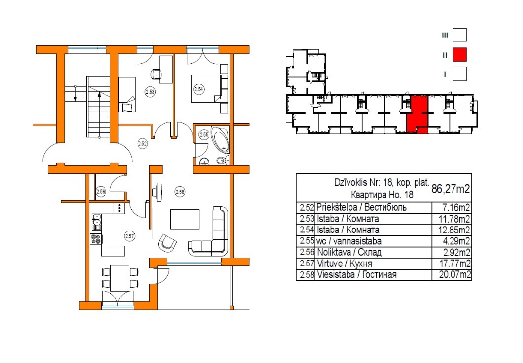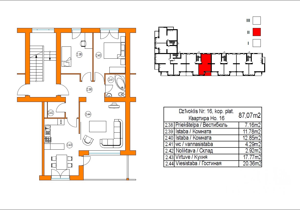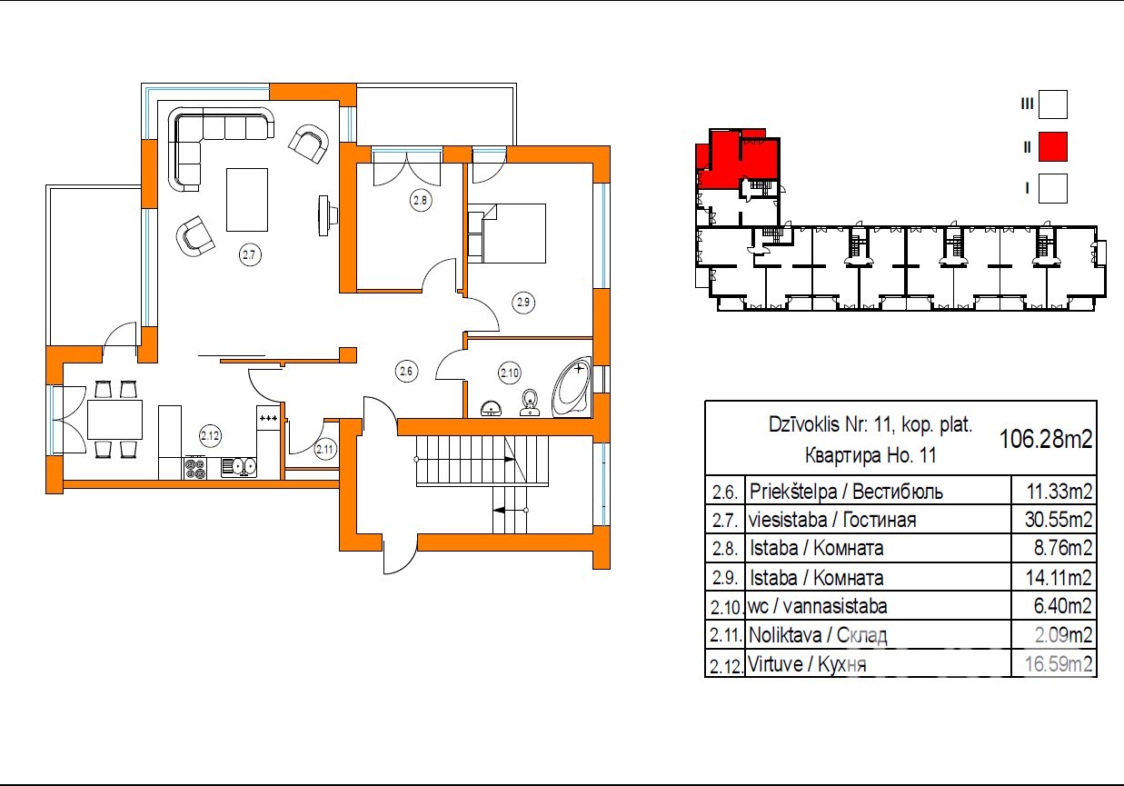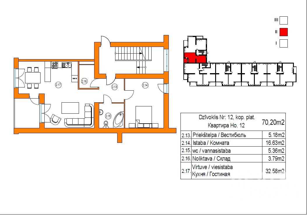 2 комн. квартира находится на морской стороне. Квартира Nr.12 расположена на 2\3 эт., общая площадь - 77 кв.м.
