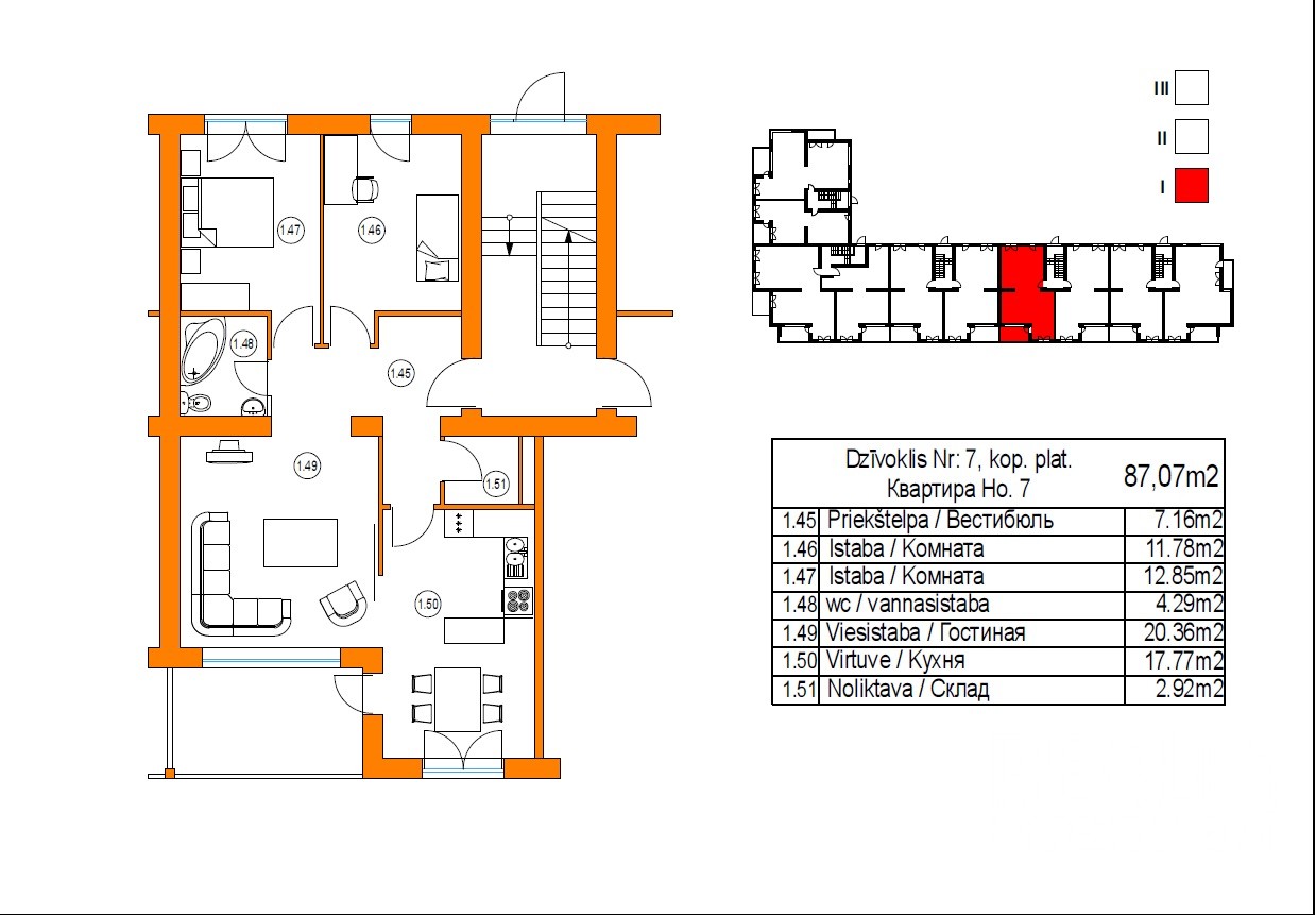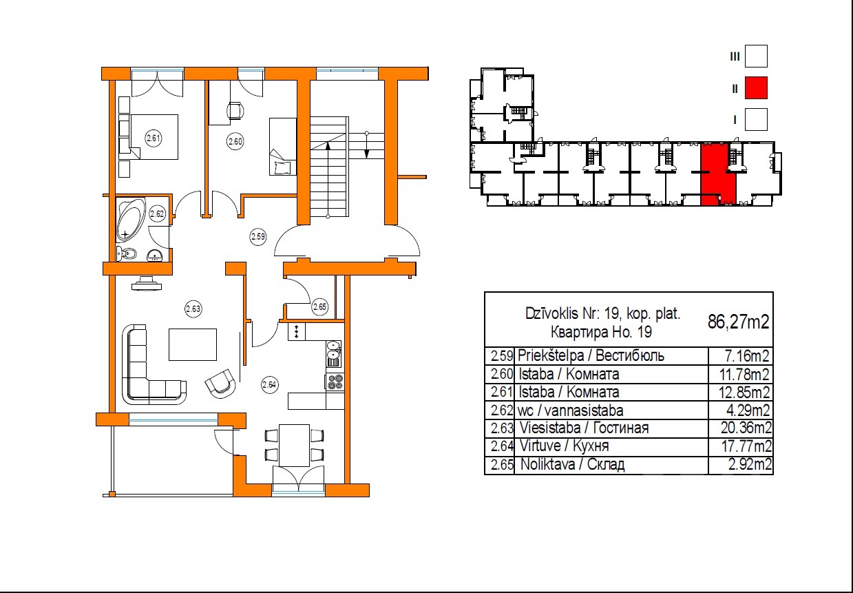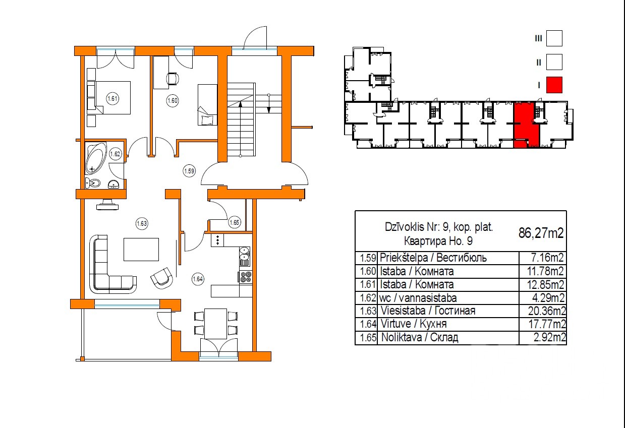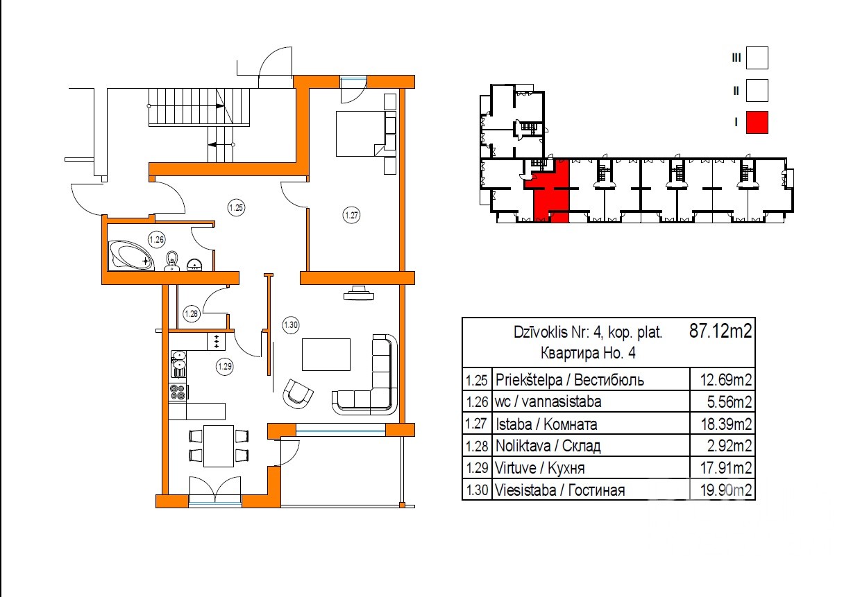 2 комн. квартира находится на морской стороне. Квартира Nr.12 расположена на 2\3 эт., общая площадь - 77 кв.м.