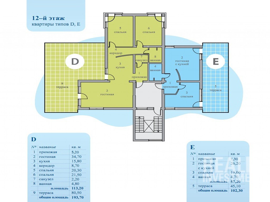 3 комнатная квартира. 194 кв.м. 12 этаж. С террасой (80,5 кв.м.). Цена –349 741 EUR.
