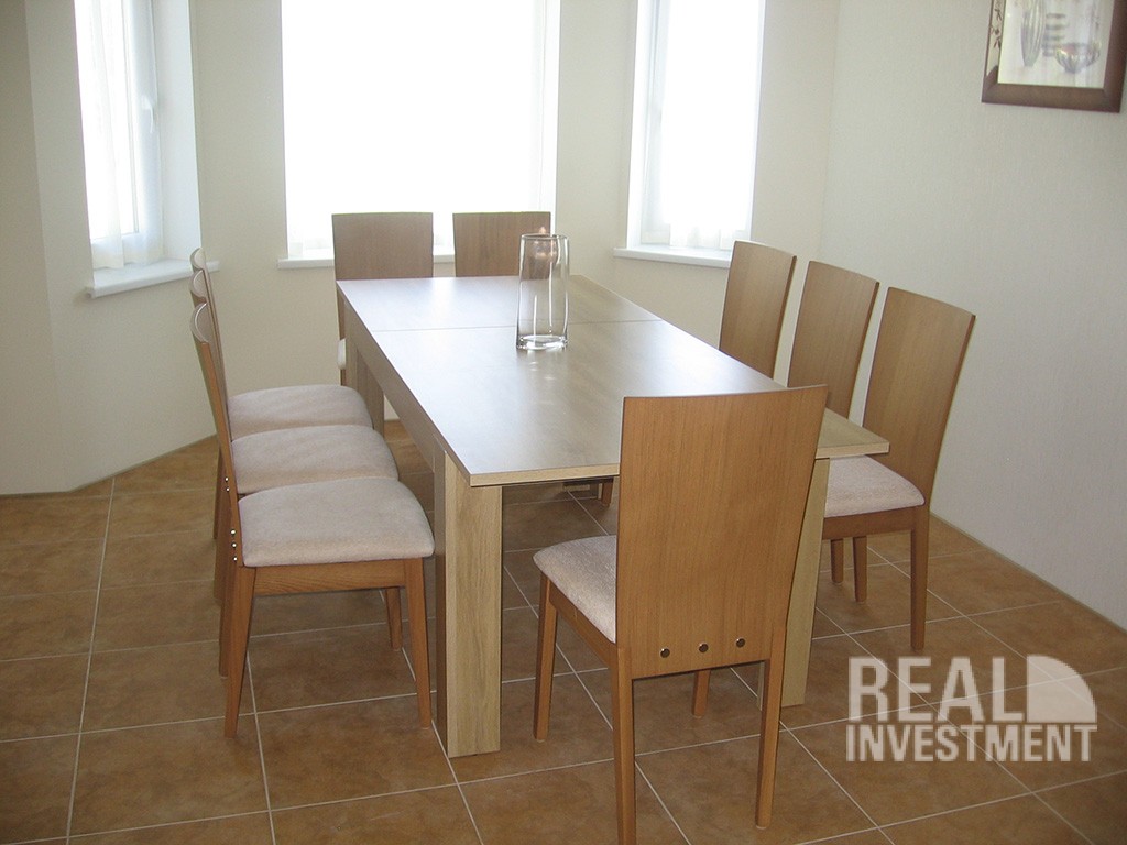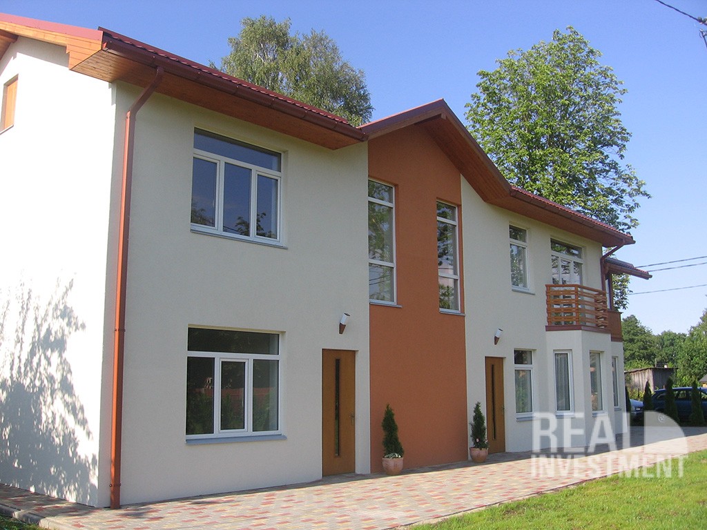 Дом построен из высококачественных материалов и оборудования: стены Aeroc+кам. вата Paroc+декор, стеклопакеты Roto, фундамент монолит с утепл. , полная внутринняя отделка, полы c подогревом Maincor, электрополы Devi, радиаторы Purmo, эл-во Siemens, вентиляция и кондиц. Bъездные автоматические ворота и гараж Hormann, 3 входа в дом (+ гараж), газовый кондиционный турбо котел Viessmann, бойлер 300 литров Junkers, спица, кан-ция, элек-во 3 фазы, телефон, tv. , 1 часть дома мебилированная. Охранная сигнализация.