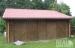 На участке находится жилой дом с серой отделкой, баня с двумя комнатами и гараж на два автомобиля. |